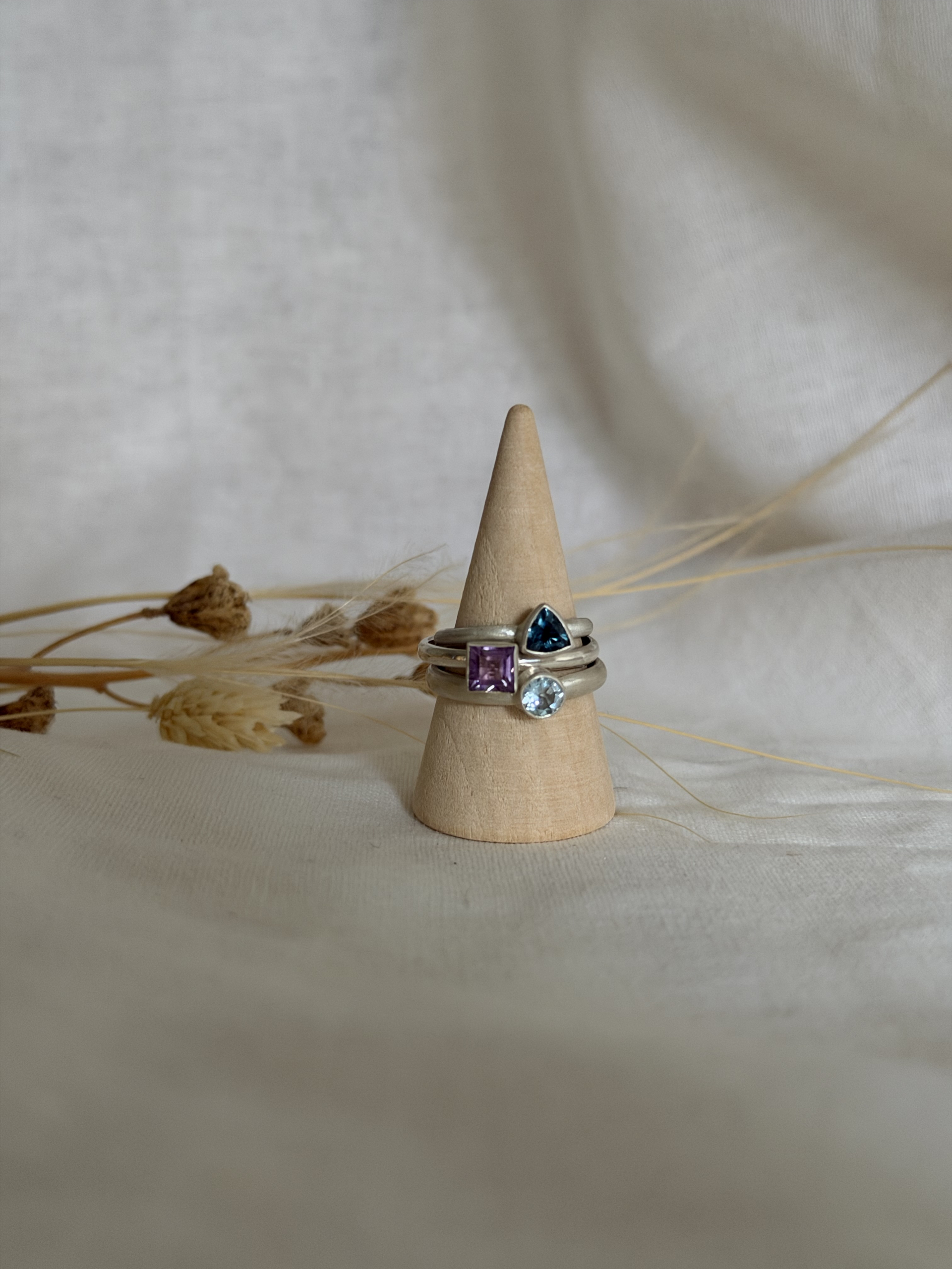 Wear it solo for a subtle pop of colour, or pair it with the Amethyst and Aquamarine rings to create your own gemstone stack.