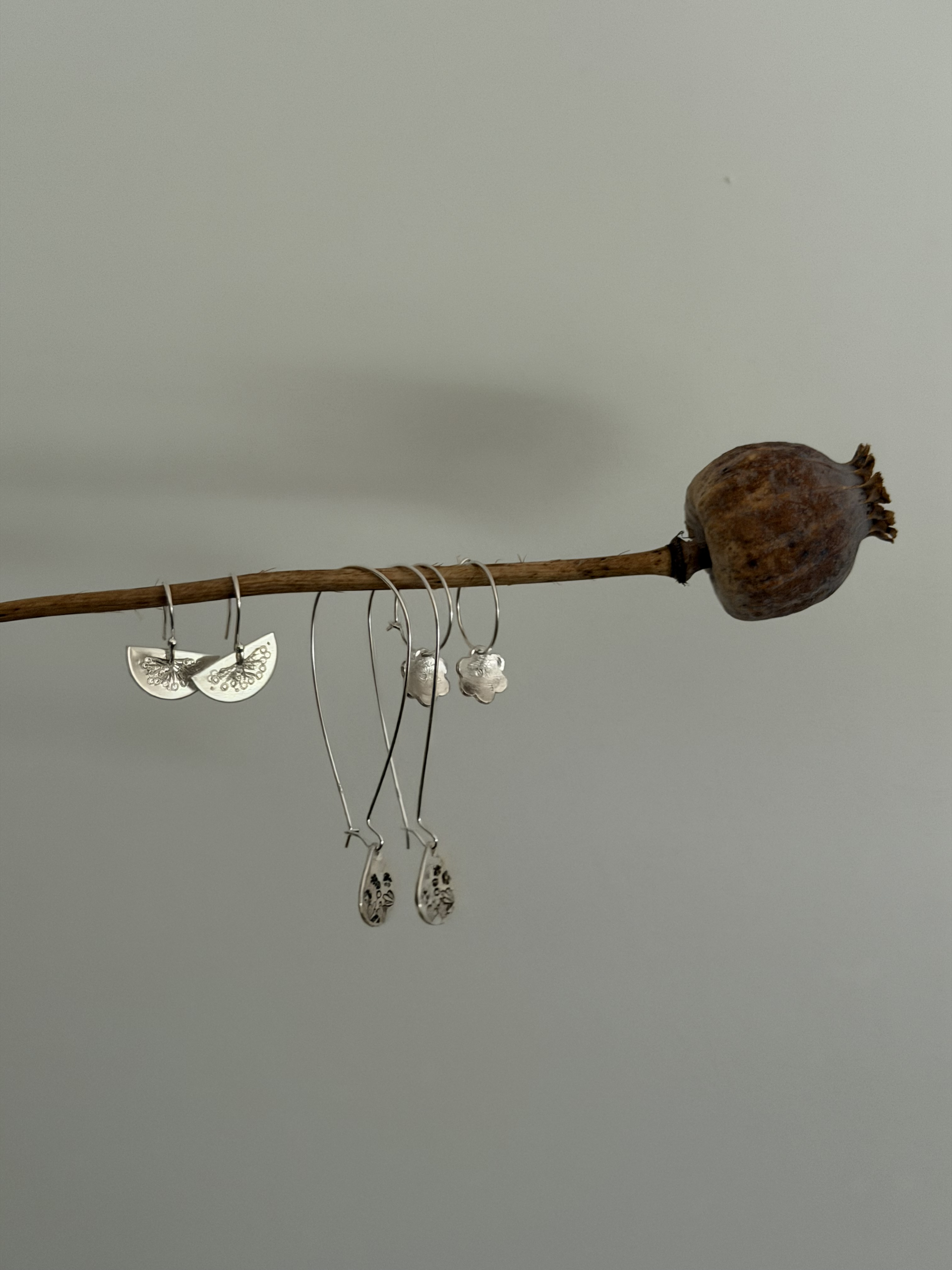 Create a pair of sterling silver earrings with your choice of texture, stamps and symbols, then assemble with hooks/hoops.