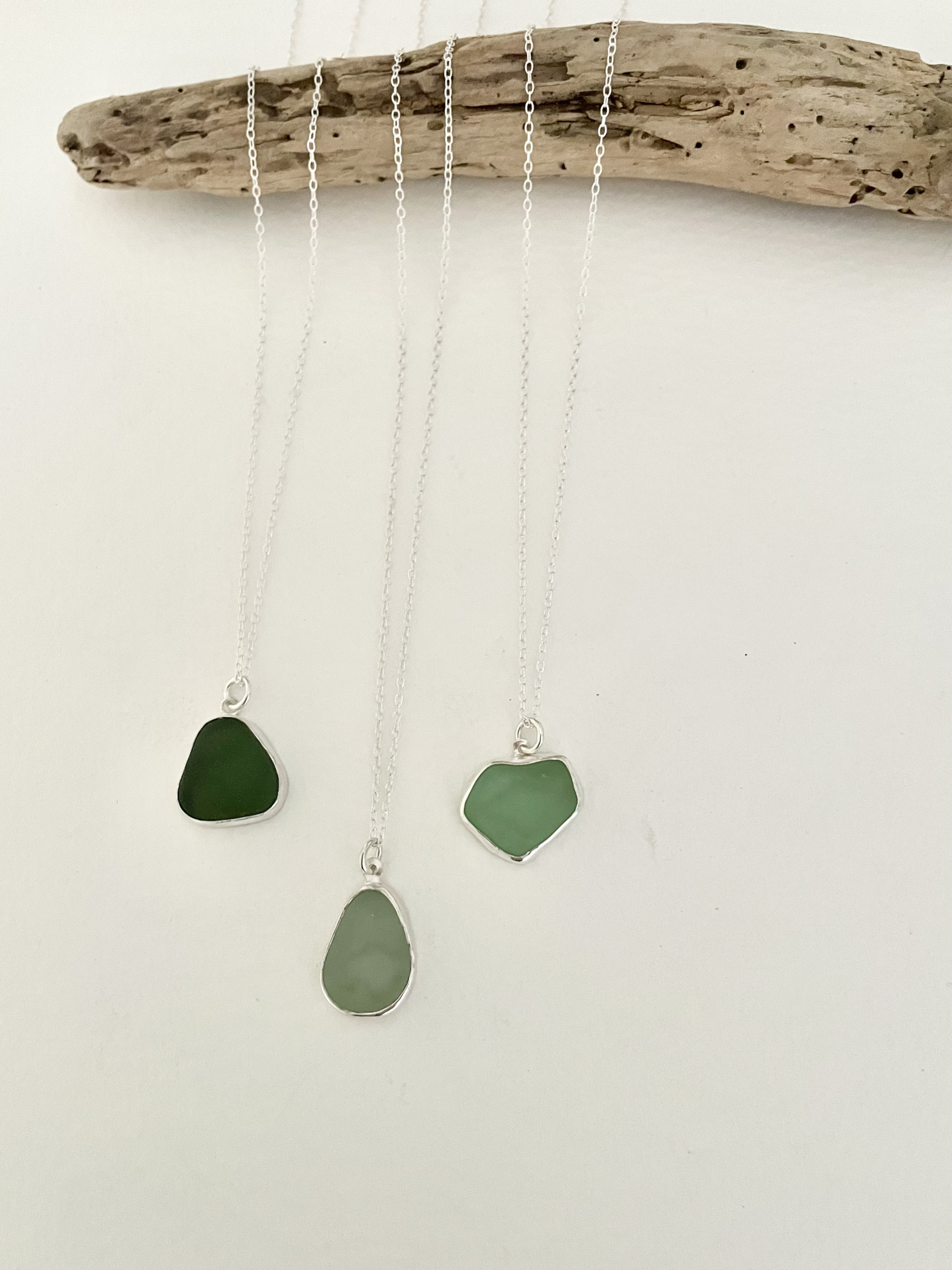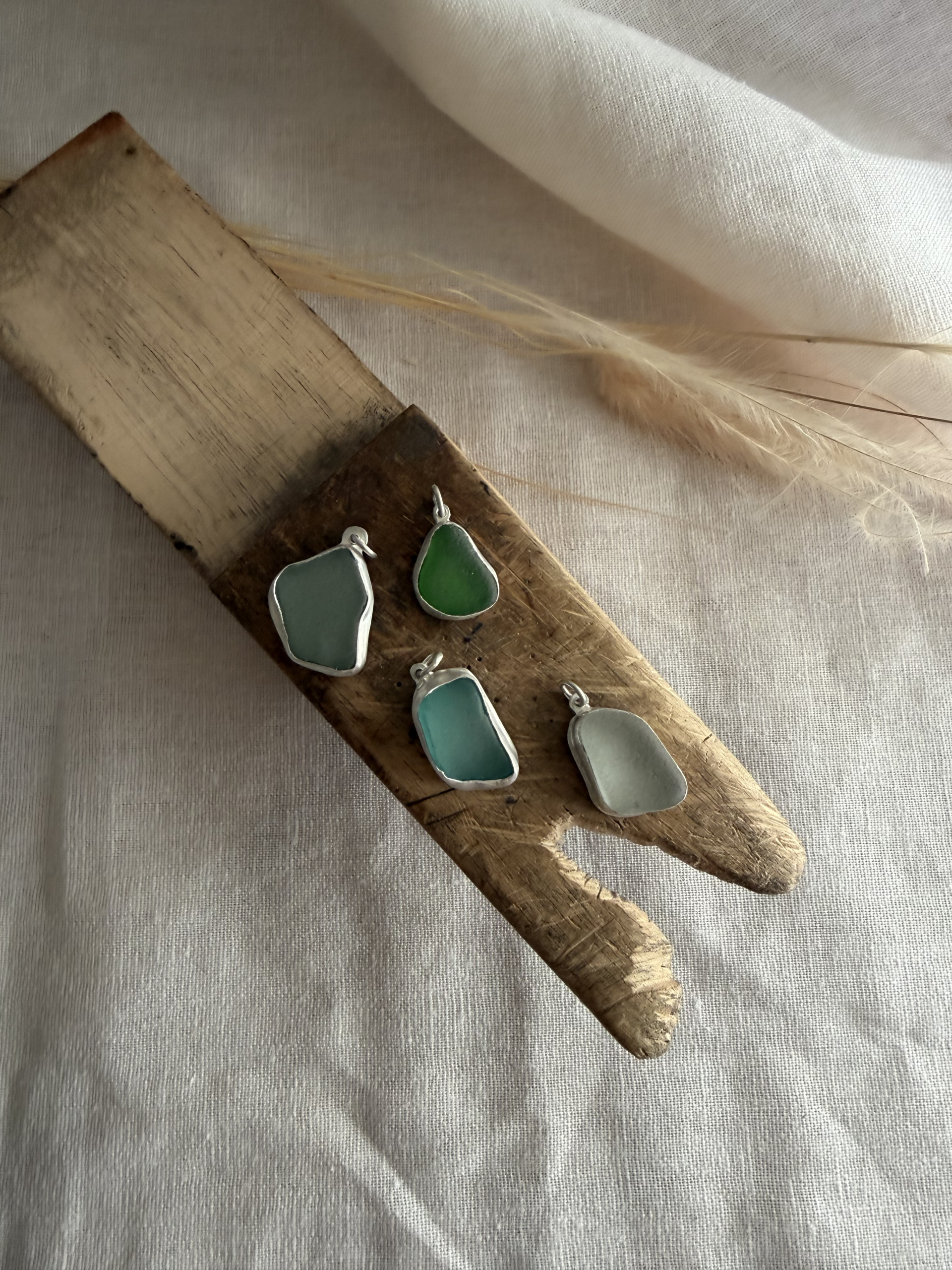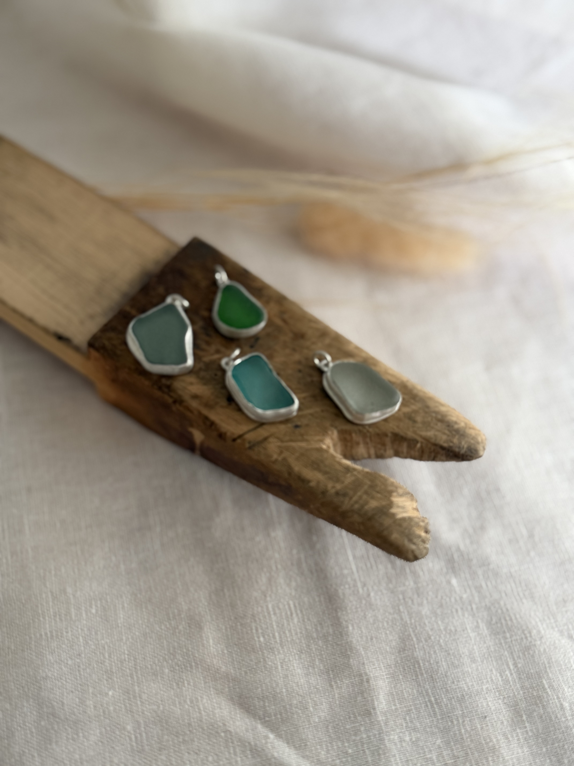 This handcrafted seaglass pendant features genuine sea-tumbled glass, shaped by years of movement through the ocean and carefully selected for its soft, frosted surface and natural coastal tones. Each piece is set in a minimalist sterling silver bezel, designed to follow the original shape of the glass and honour its journey.
