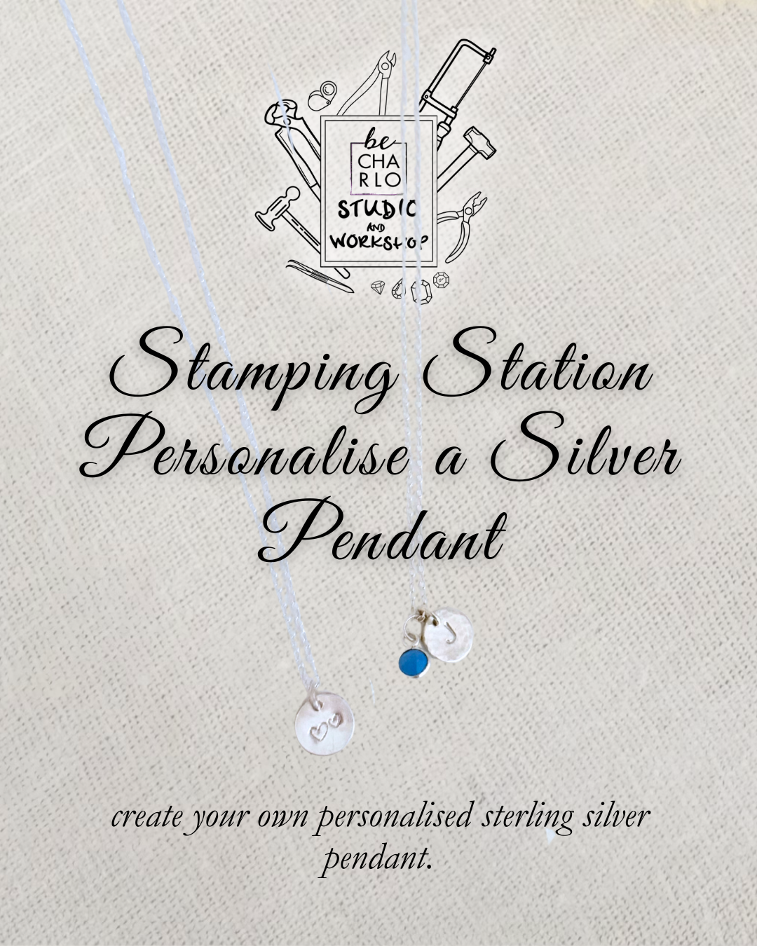Welcome to the beCHARLO Stamping Station – a quick, joyful studio experience where you can create your own personalised sterling silver pendant.